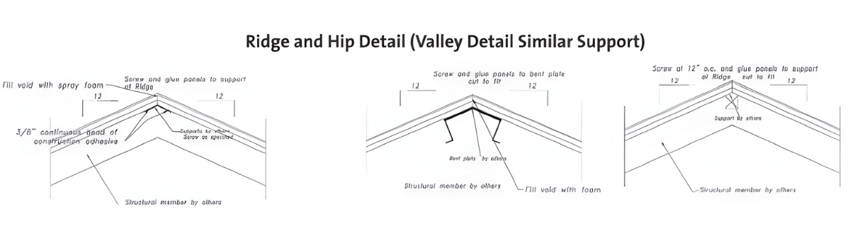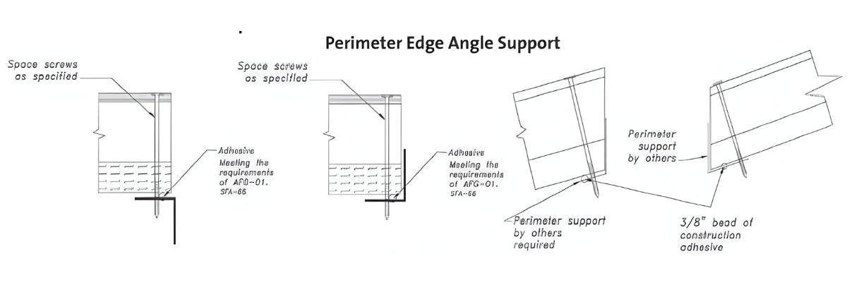 Screw attachment requirements can vary based on panel width and project-specific design criteria. For typical conditions, 47-inch-wide panels generally require three to four screws per bearing. Final screw quantities and spacing are determined for each project by the approved contract documents, project specifications, and manufacturer installation requirements. Additional fasteners may be required where dictated by uplift, shear, or other structural considerations.